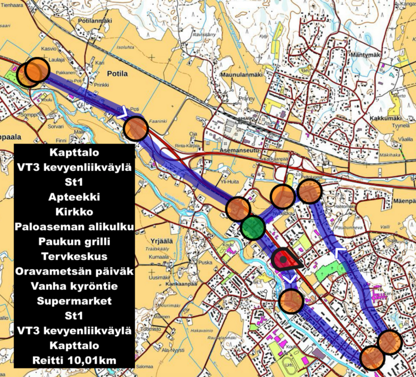 Pidämme reserviläisliiton syyskuun teeman mukaisen maaottelumarssin yhteismarssin Laihialla TO 11.9.2025 lähtö klo 17:45 kapteenintalon parkkipaikalta. Hyväksyttyyn suoritukseen vaaditaan vähintään 10km pituinen marssi kävellen tai juosten. Ohessa kuva reitistä joka 10,01km. Marssi EI OLE missään nimessä kilpailu, vaan jokainen voi edetä oman kunnon ja terveystilan mukaan. Juomapiste reitin varrella apteekin ja Oravametsän päiväkodin paikkeilla. Huoltopisteellä voi arvioida omaa jaksamistaan ja tulla tarvittaessa autokyydillä pois. Ota mukaan myös puolisosi tai ystävä. Marssin lopuksi iltapalaa tarjolla kapteenintalolla.